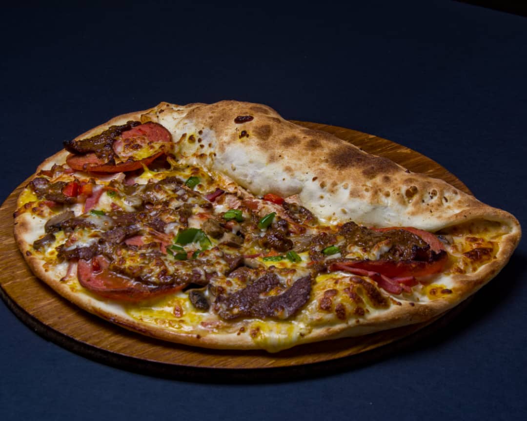 خمیر ایتالیایی-سس مارینارا-ژامبون گوشت-چوریتسو پنیری-دلمه رنگی