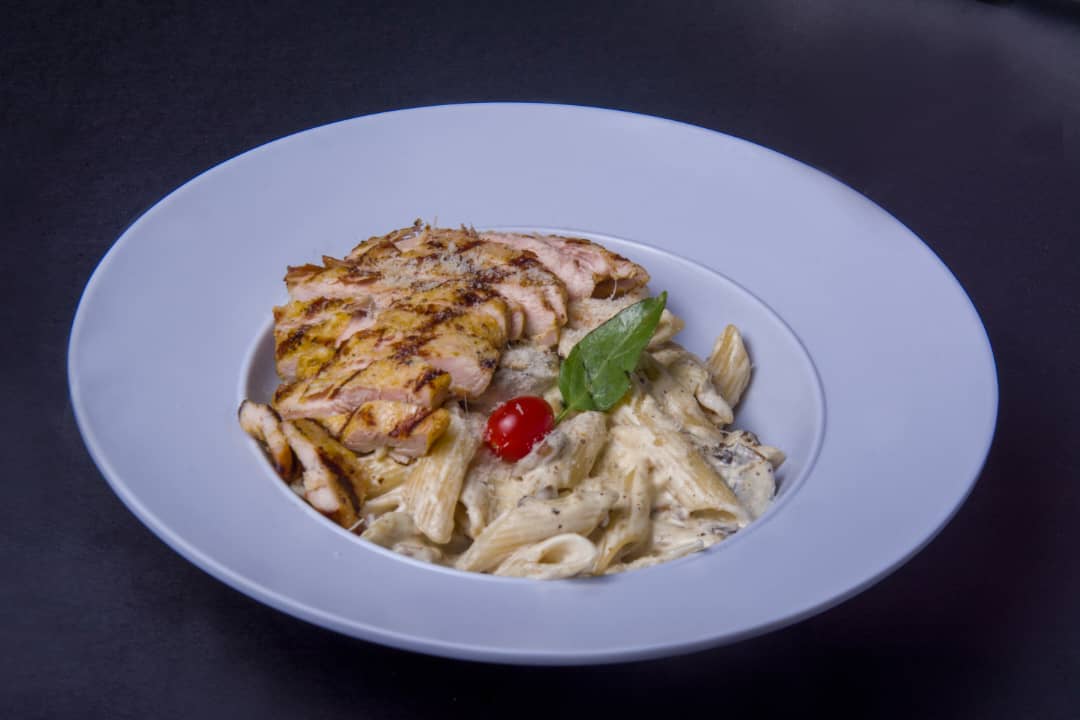 پاستا پنه ، سینه مرغ ، قارچ ، سس آلفردو ، پنیر پارمسان