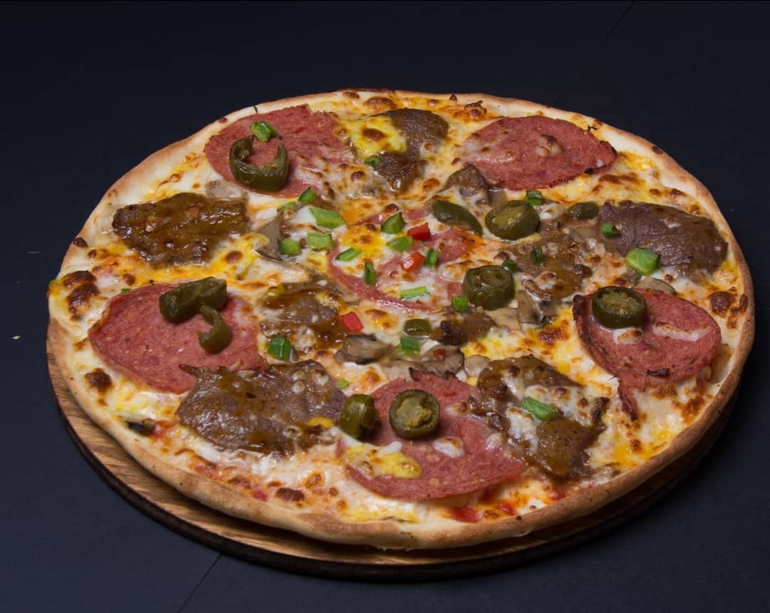 خمیر ایتالیایی-ژامبون گوشت-رست بیف-سس قارچ-میکس پنیر