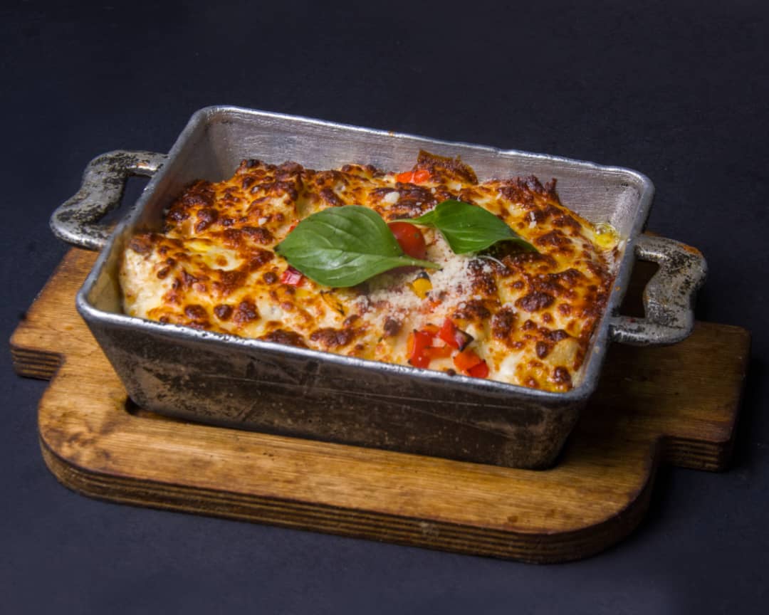 پاستا سیب زمینی ، فیله گوساله ، سس آرابیاتا ، ریحان ، پنیر پارمسان